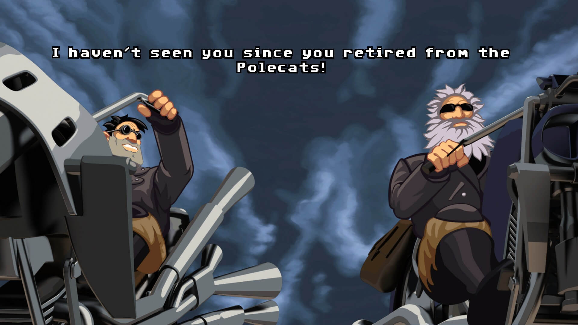Alongside the audio, the graphics have also been shown some love. Although the design choices remain the same, the pixelated animations of the past have been polished. Ben, in particular, looks more defined with his distinguishable facial hair and the back of his leather jacket bearing the now viewable, Polecats emblem. Jumping between the original graphics on the fly is always a nice feature which I would find myself taking advantage of in every new location. One issue of the graphics refinement is the lip syncing as they do nothing to resemble the words being spoken. It is a shame that the clever writing and great voicing make it more apparent.