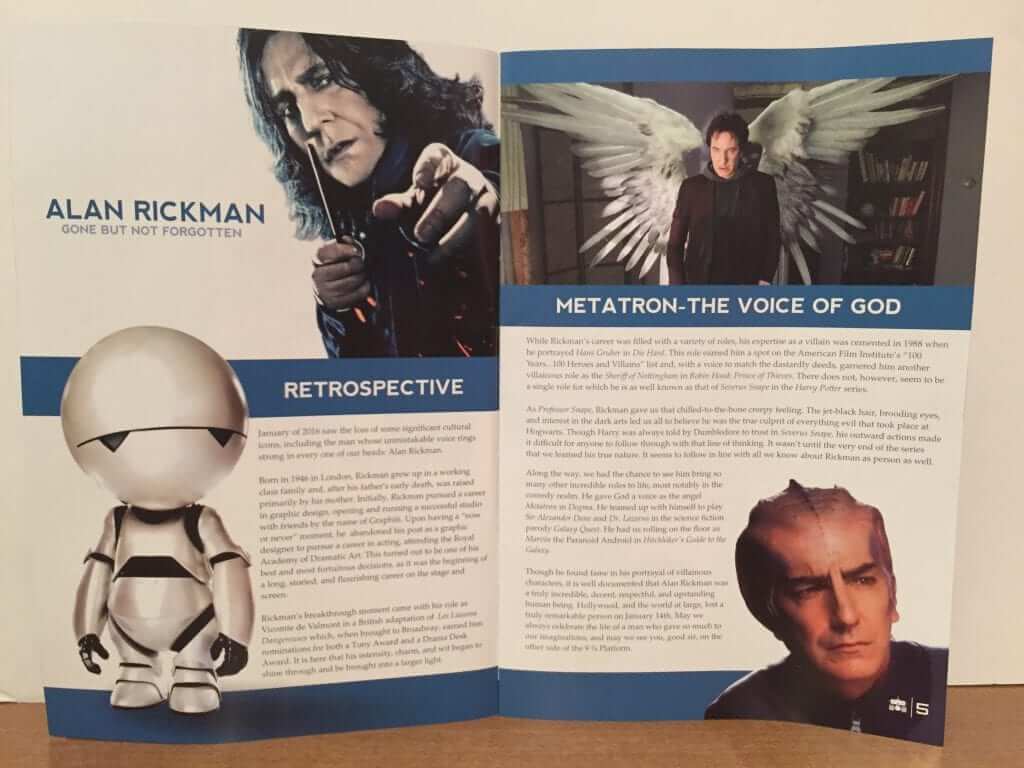 Deadpool was on the cover of the Geek Fuel Magazine, a magazine included in the box each month. It also had some content devoted to Deadpool with the article, Five Roles Prepping Ryan Reynolds for Deadpool. the magazine also paid tribute to Alan Rickman, and there was information about the free game download (also included in this month’s box), Elliot Quest.
