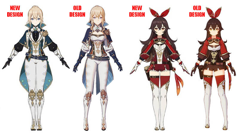 The so-called partial redesigns range from simple color changes, completely different leggings to more “modest” tops. Check the pictures below for a direct comparison between the new and old designs and see which ones you prefer. You don’t have to worry anyway because miHoYo has promised that the default outfits will be retained, and players on the global servers will be able to swap between both as they see fit.