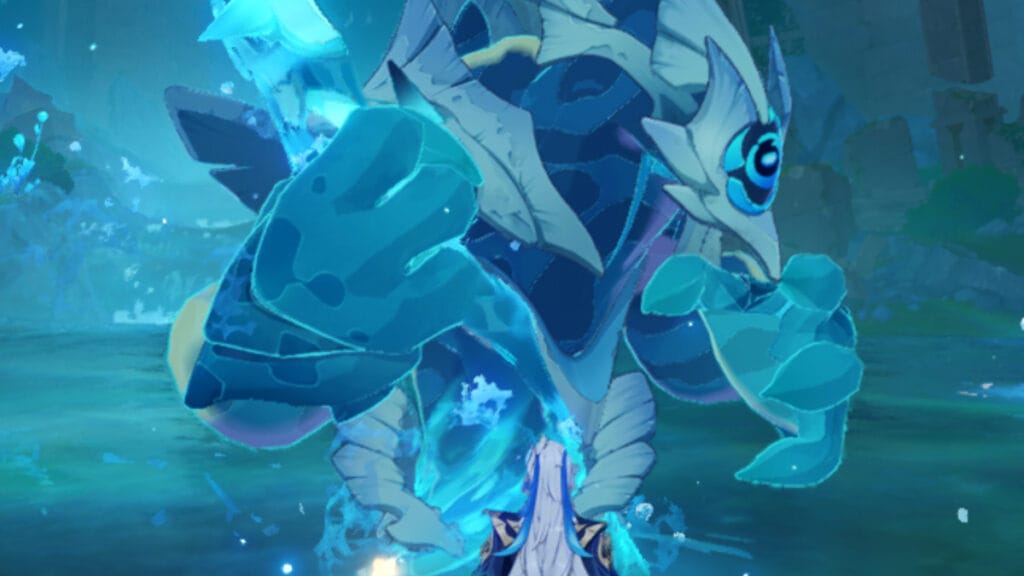 One quick note is that Genshin Impact 4.2’s Hydro Tulpa is completely immune to Hydro attacks. This means that new Neuvillette players may have to bench their shiny new character. Instead, a Dendro character like Nahida, or Electro character, like Fischl, make this fight far easier. With their elemental application, both characters can quickly clear the droplets and deal massive damage to the boss. A strong Pyro main DPS is best for sustain damage, though any non-Hydro main DPS works as well.