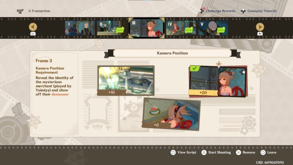 The Genshin Impact Into the Frame event has a new stage called A Transaction. In this new part, the characters who came from Inazuma to the Fontinalia Film Festival to be actors in one of the films will finally appear. For this scene, will be participating Riqueti, an NPC from Fontaine, will be the “customer,” and Yoimiya will play the role of “the merchant.” Remember to keep the atmosphere of a formal transaction and take advantage of the best scenes you record with these two actors. Time is money, so lights, kamera, action!
