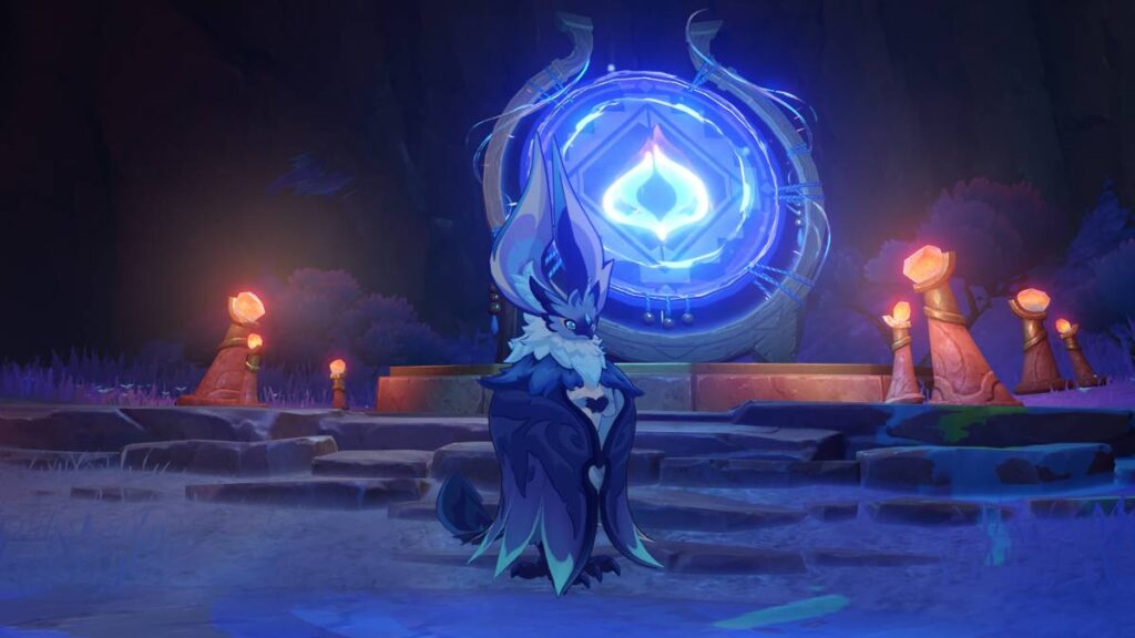 4. It will start a cinematic of the Traveler and Paimon talking; when it ends, a new light will appear and a spot to turn you into an Iktomisaurus.