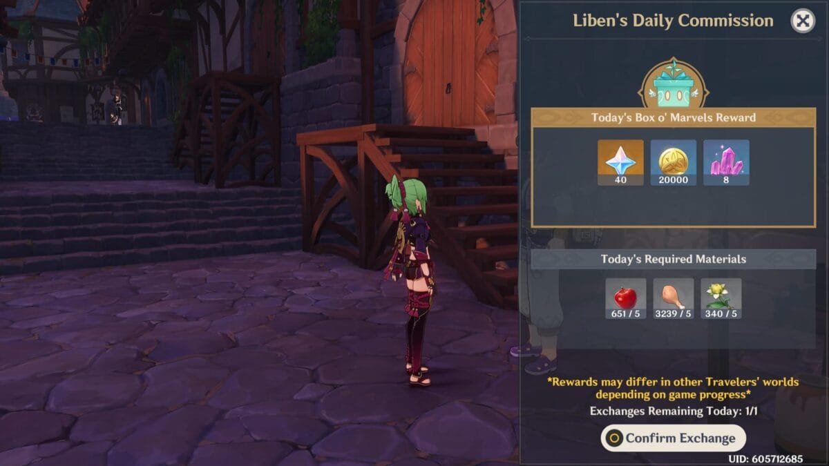 After trading five different boxes with Liben, you can earn a special “Mega Box o’ Marvels” on the final day, rewarding you with Primogems, Hero’s Wit, Mystic Enhancement Ore, and Mora. You’ll only be able to submit one reward per day, so after getting one box, you’ll have to wait until the server resets to get your second.