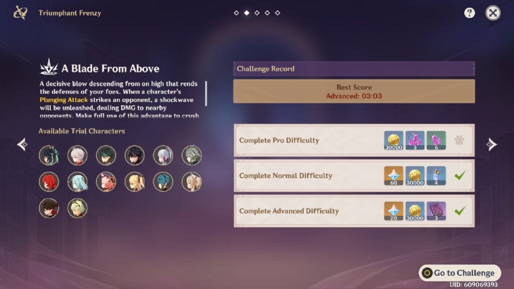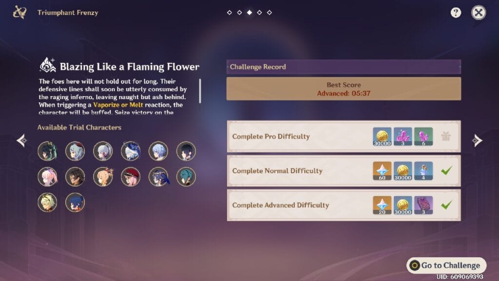 For this Genshin Impact guide, you could complete the Triumphant Frenzy event on Advanced difficulty. Finishing the enemies within the time limit is not that hard, and you will be sure to earn both Primogems rewards for only playing each stage once.