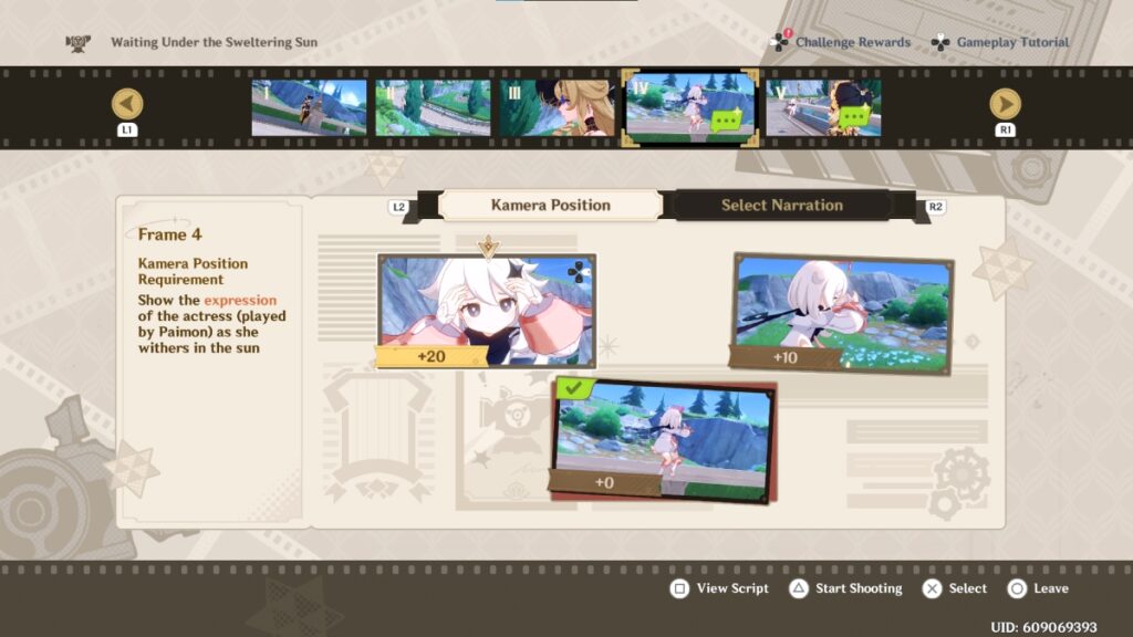 You can access this stage through the Into the Frame event menu, which will open the Genshin Impact map and show the marked location near the Fountain of Lucine. Fortunately, you can use a nearby Teleport Waypoint to start the event quickly. As in The Path of the Sun, this part will have several frames you must select according to the scene’s requirements.