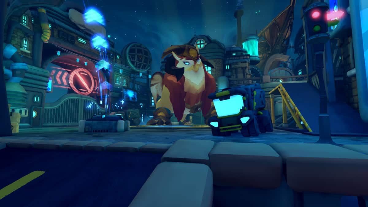 Imani aims her crossbow like a sniper rifle, dialing in her sights on Lord Knossos across pirate-themed Picaro Bay. Before she can send a charged bolt at the minotaur’s head, a smoke bomb erupts in front of him. Kajir. The weasly Assassin nails Imani with a dagger, teleporting in behind the blade and unleashing a flurry of sickle slashes. Before he can finish the job, Uncle Sven pitches a flask of caustic liquid at his head, splashing the battlefield with noxious fumes as Imani leaps away. Gigantic does playful violence right.