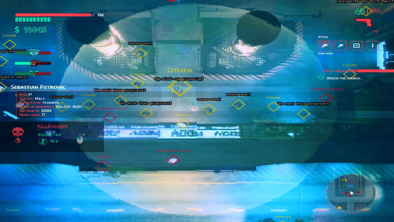 A few bugs to keep in mind, should you scroll over to Glitchpunk and find interest during its Early Access run. There have been reports of random NPCs popping in and out during missions. Bypassing this little bug requires drugs and ammo on hand if you know what to do since the game does a mediocre job of showing you around and what’s what. If you die while completing or failing a mission, you’ll reboot without the gang markers. The simple remedy for this is to just look at your map, but the markers shouldn’t have disappeared while free-roaming.