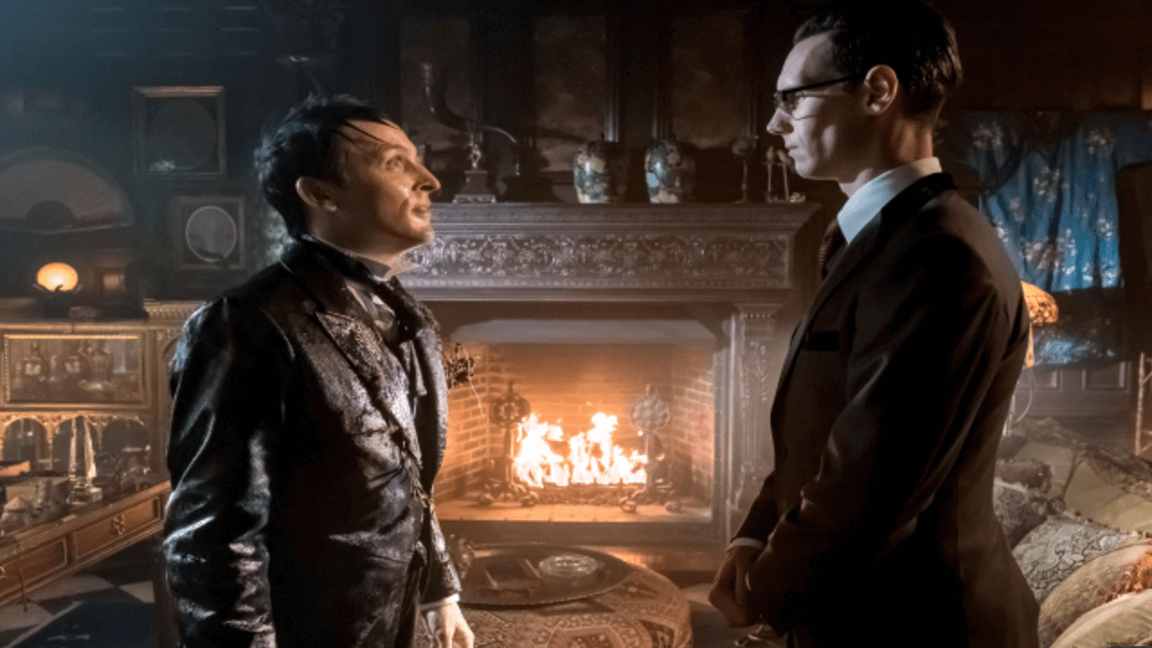 It’s finally here. Gotham officially returned after a long 3-month hiatus. So let’s waste no time and dive right into How The Riddler Got His Name. When we last left the show, Edward Nygma (Cory Michael Smith) had shot Oswald Cobblepot (Robin Lord Taylor). Cobblepot fell off the docks and seemingly drowned. However, let’s be honest, you and I both know they can’t kill him (at least not yet). He’s The Penguin and Bruce (David Mazouz) isn’t Batman yet so killing him off would be too big a risk, especially this early in the series. Edward on the other hand, believing Oswald is truly dead, has been having visions of his old friend, with the help of pills. In these visions, Oswald is covered in water and seaweed with a bullet wound to complete the image per Edward’s warped imagination. There’s even a dance number (I’m serious).