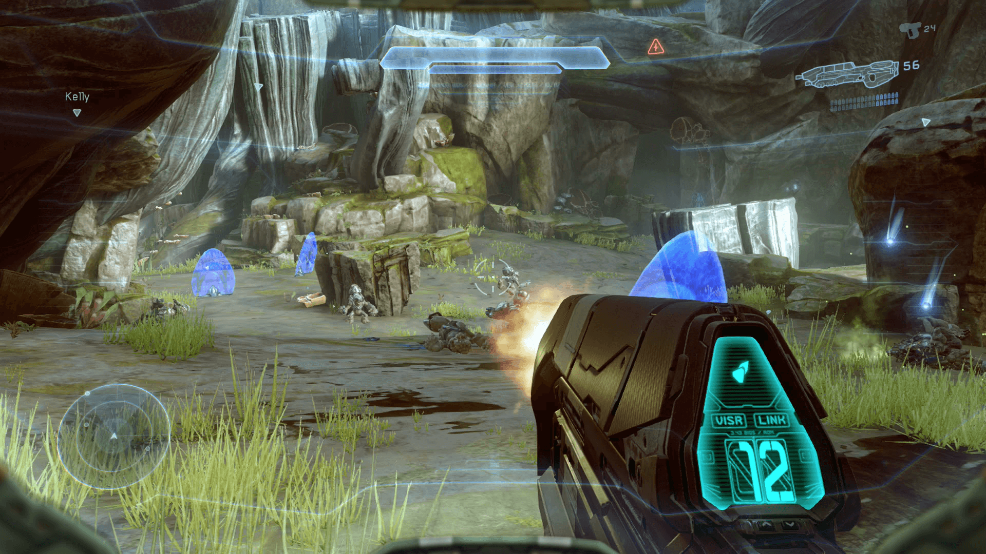 The other big change in Halo 5 is the fact that youโll always have three companions assisting you. These can be human controlled or the AI will support you however I use the term support very loosely. Your AI counterparts can be more of a hindrance than a benefit at times. They can revive you if you fell, but they are terrible at finding cover. They will attempt to heal you whilst standing in plain sight of the enemy and a domino effect begins as they fall one by one. Due to you having allies, there are more enemies than ever to counteract this and on the harder difficulties, the single player campaign is near impossible. You do have the ability to direct their movement but you cannot select individual locations, instead they will all rush towards a single marker. This is particularly frustrating during the boss battles where you need to flank, but you have a lack of control.