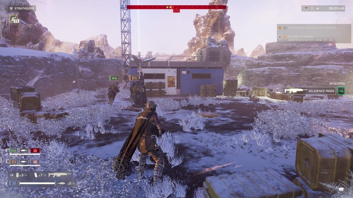 Beyond that, the best thing about combat is the so-called Strategems. After pressing a series of directional buttons in real-time, you can request these drop-offs at any time in the game. This is one of the most exhilarating things because nothing takes away the thrill of calling for an orbital attack while escaping from a Bile Titan. These Strategems include powerful weapons, sentries to protect you, or even supplies to help your fellow Helldivers. Of course, some weapons still need to be adjusted as they don’t work quite right. Occasionally, late-game weapons feel weaker than the ones you initially unlock, which means some tinkering is in order.