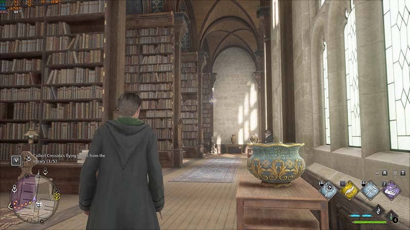 In order to collect the fourth and fifth Flying Books, you’ll need to head to the first floor of the Library. Here, you can also find the Flying Books flying around throughout the bookshelves. Use your Revelio Spell to find the Flying Books, then use your Accio Spell to collect them.