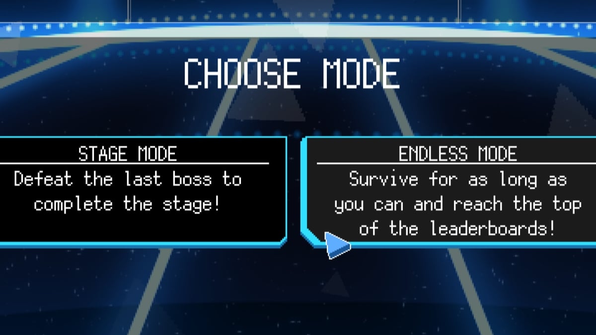 The mode selection screen in Holocure, featuring Stage and Endless modes