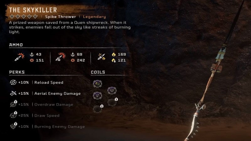 Another one of the best weapons in Horizon: Forbidden West that can edge out the Death-Seeker’s Shadow is The Sun Scourge. Not only does this fire fast, but it has three elemental arrow types to handle multiple situations. Furthermore, there are five coil slots. This is simply an ideal all-around Hunter bow.