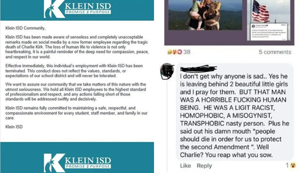 Houston Area Klein ISD Fires Educator and Coach Over Social Media Remarks on Charlie Kirk Incident: ‘What a Lovely Little Fascist Timeline We Are Living in’