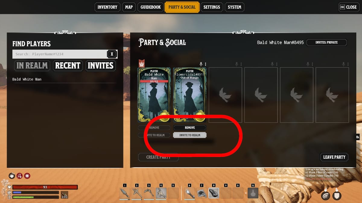- If they’re not nearby after accepting your invite, select ‘Invite to Realm’ under their card in the ‘Party & Social’ menu.