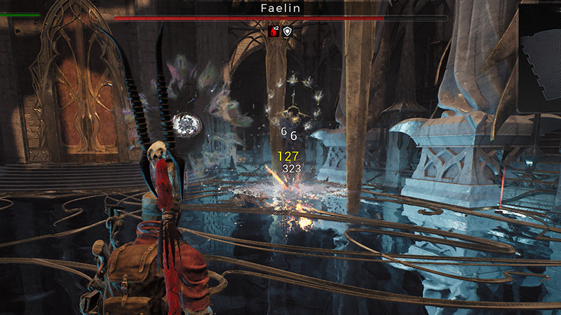 After Faelin or Faerin’s elegant and majestic levitated walk from his throne, the grandiose battle will commence. The Fae monarch might seem distant at first, but don’t be deceived. He will dash forward to you, executing one or more melee slashes. Time your rolls right when he brings his arm down; otherwise, you’ll taste his royal blade. Continuously dodge backward or to the side to avoid being struck. Stay away from the pillars and walls on the side of the chamber at all costs, as you can get stuck in the environment’s stiff geometry.