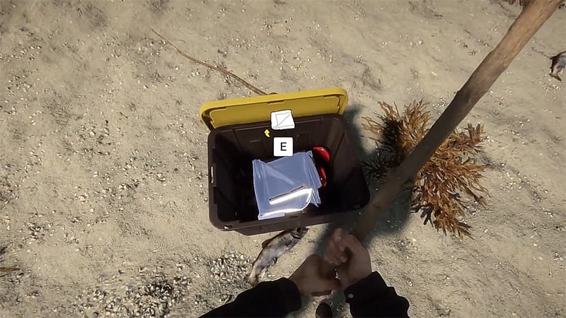 After that, open your inventory and equip the Tarp. Your character will spread it on the ground. And then, you have to interact with Tarp while holding a Stick. And yes, it looks like something a child made out of pillows and sheets. But, this is a survival game, not a competition for the best Shelters. However, as you progress, you will be able to create better Shelters using the Guide Book.