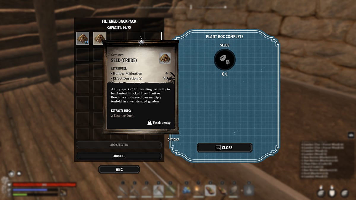 Once you’re ready to start planting seeds, interact with your plant box and select the seed you want to put in it. Once it’s planted in your new Plant Box, you can use your new Simple Watering Can to water, then sit back and wait.