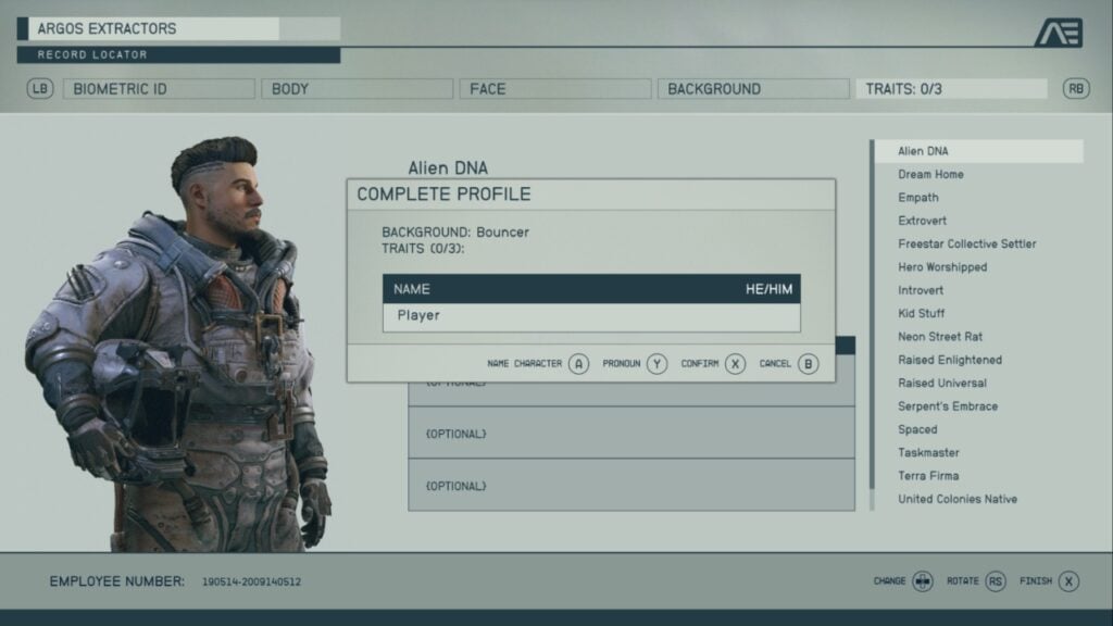 You’ll have an opportunity to change your name, pronouns, hair, facial hair, face, and body. You cannot, however, alter your background or traits.