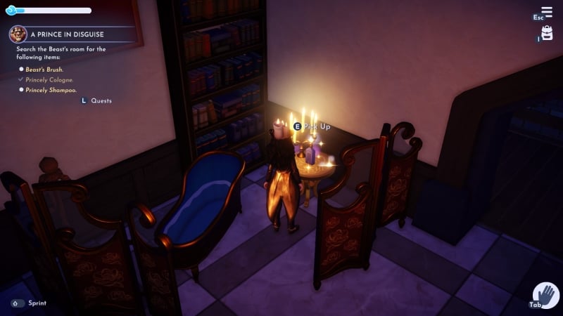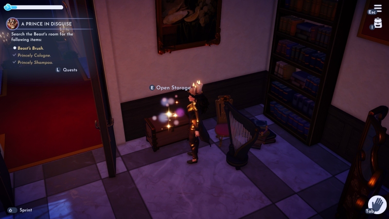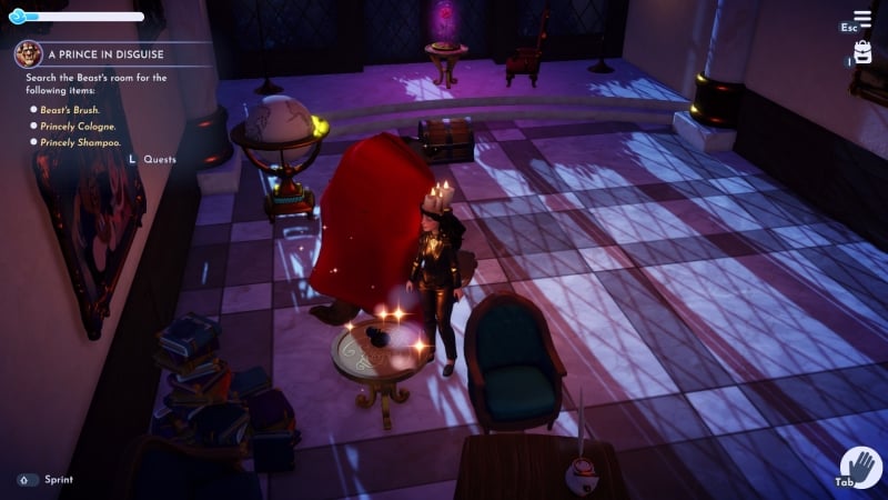 When you create the Book Kit, you must return to Beast in his castle and deliver it. But before you can give it to Belle, Beast will need to make himself presentable, so he will ask you to help him find the following objects in his room: