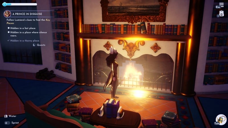 Once you have all the pieces, return with Beast so he can put them together and give you the complete key. This key opens the chest in Beast’s room, where you will find the Enchanted Mirror, with which Beast discovers the ideal gift for Belle. Beast will then ask you to collect the following materials to create the Book Kit for Belle: