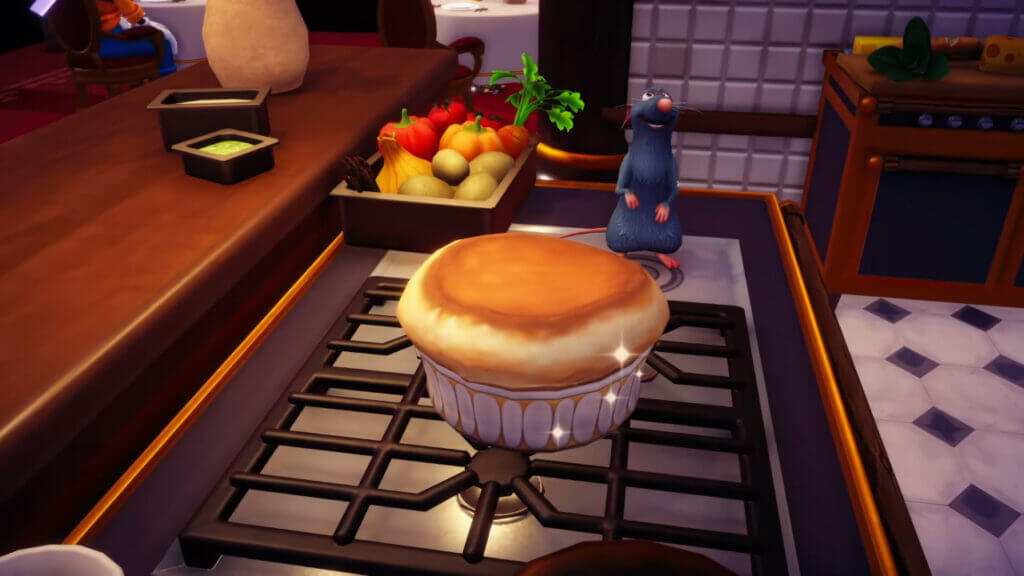 Remy will ask you to cook 5-star meals for four esteemed guests: Merlin, Scrooge McDuck, Mickey, and Goofy. To help you out, Remy will provide you with some ingredients: