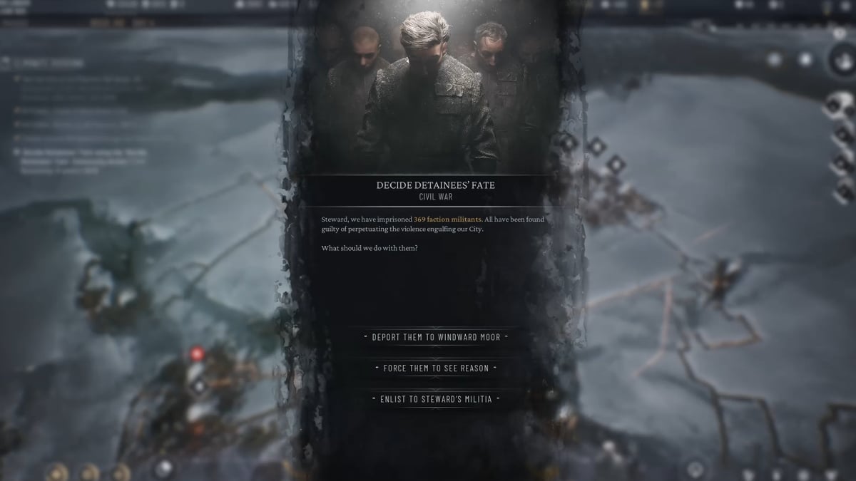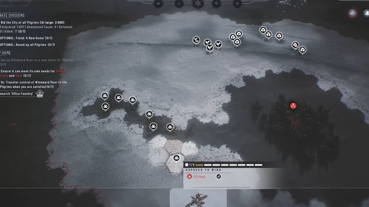 During my Frostpunk 2 playthrough, I decided to side with the Stalwarts and stay in New London, so I have to deal with the Pilgrims in Chapter 5. Out of the three choices, I opted to banish the Pilgrims to the Windward Moor. At this point, you have two routes.