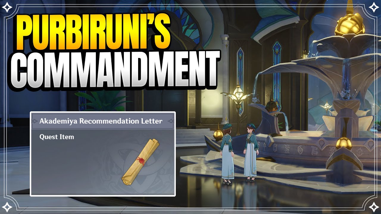 You can complete Purbiruni’s Commandment in Genshin Impact by acquiring Sadife’s Case and reporting to Khedive. However, you first need to get Akademiya Recommendation Letter from Khedive by completing the following: