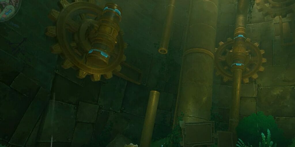 Once you enter from the door, follow the path, and at the end of the path, there are two Clockwork Mekas you must defeat. Once you defeat both, you must get to the platform below and solve another gear puzzle. However, it is not difficult since you have to connect two pipes by rotating them.