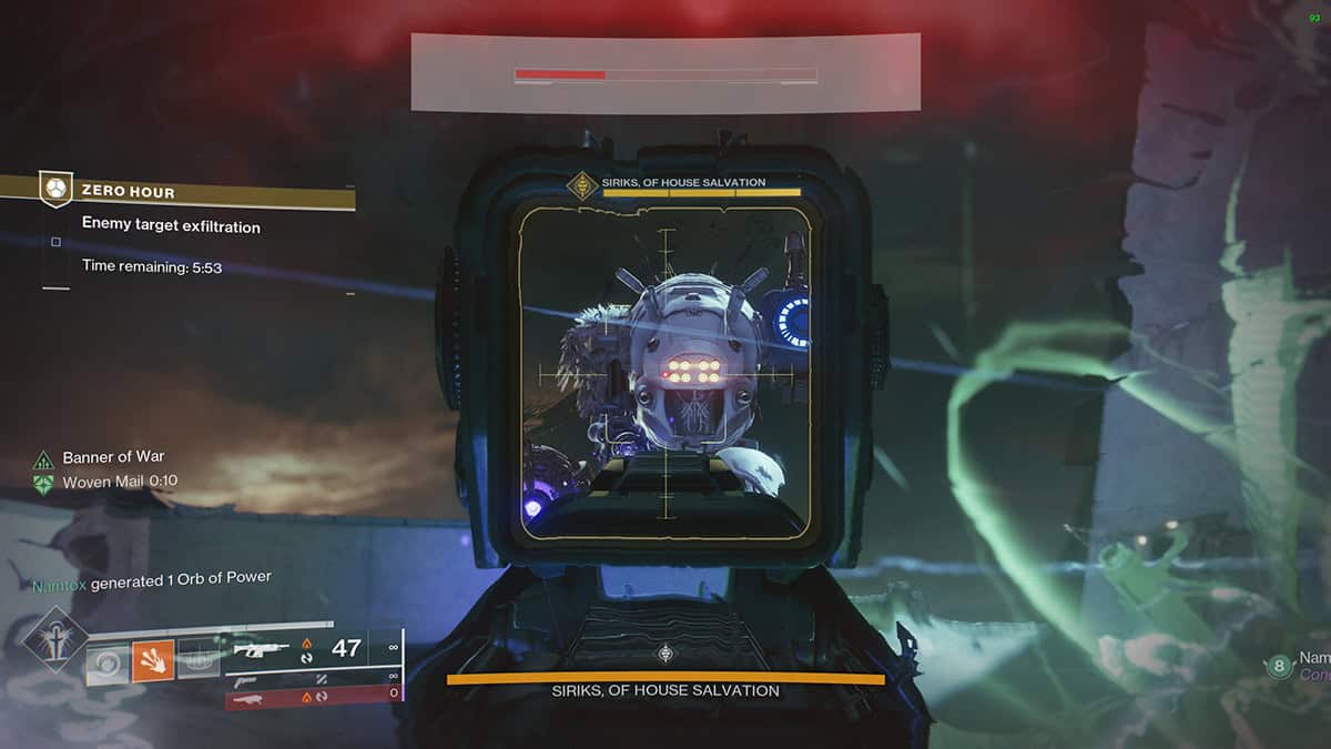 At that point, he’ll disappear, and two tanks will spawn. Once the tanks are defeated, Siriks will appear again, but this time in his “heavily armored” brig form. Defeating this final form of Siriks will complete the Zero Hour Exotic mission in Destiny 2.