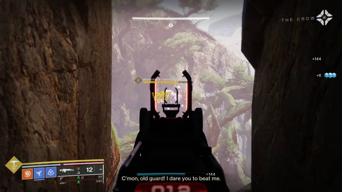 The next step will have you go through a cave until you reach the location where you’ll do a stakeout. However, due to Cayde-6 being impatient, you’ll start fighting another boss. The Hoarder of Tainted Light will shoot from afar and send the occasional drones your way. When it puts its shields up, start firing at the small drones until its shields are down. It’s a pretty easy fight, but you can’t leave the small area, so be mindful of that.