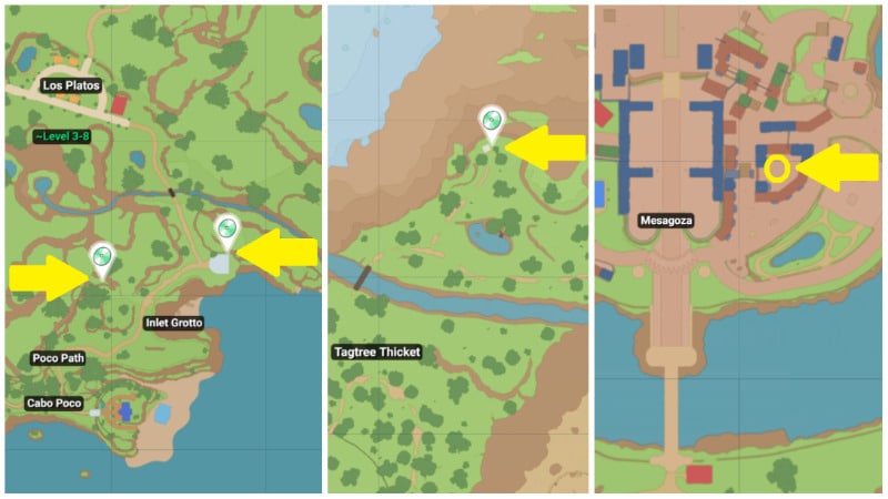 And if you’re in a hurry to visit the nearest Pokemon Center and start crafting, you should slow down. To get the TM 081 Grass Knot recipe, you must find at least one in the open world. Those who don’t travel a lot might be worried. But don’t worry, there are as many as four points with TM 081 in the game, so you can visit the one that is closer to you: