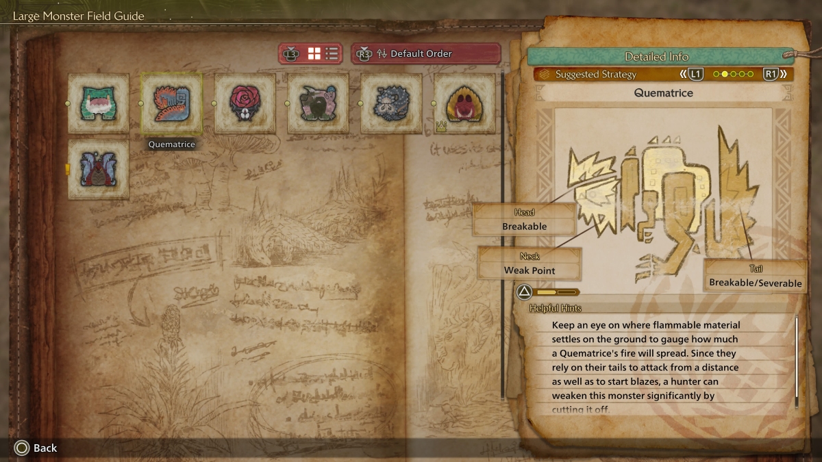 Before trying to perform any of the new moves in Monster Hunter Wilds, we need to talk about Quematrice’s weaknesses. This creature stands tall on its two legs, has short arms, and a long tail that it uses to launch fire attacks. Beyond that, this bird-like monster tends to attack quickly with its beak when you’re close to it, so that means there are two things you need to break quickly: its head and its tails. These two are breakable parts but not weak points. Still, taking care of them will make the fight much easier. If you want to attack this monster’s weakest points, you need to aim for the neck and the chest.