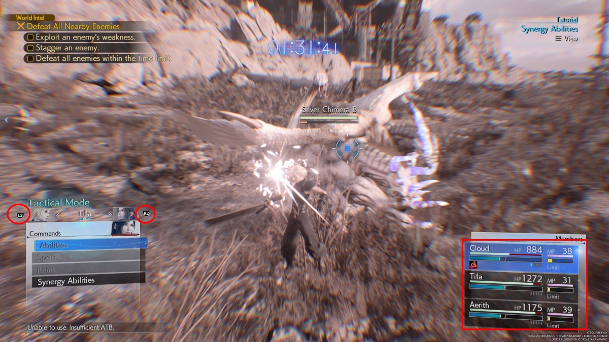 The second way to switch characters in battle in Final Fantasy 7 Rebirth is by using your directional buttons. This will allow you to control any of your other two active party members. This is useful whenever a character is stunned, or you want to make one party member fill its ATB gauge faster. You can also use it if you feel the AI is not fighting well on its own, but that rarely happens.