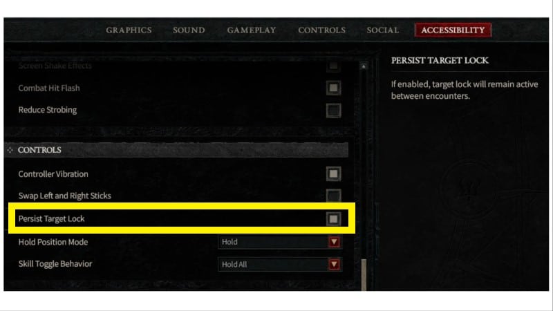 - Find the Persist Target Lock function and activate it by clicking on the small square on the right.