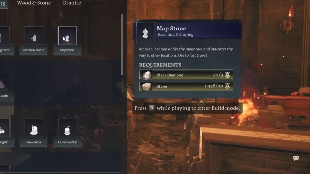 You can craft a Map Stone at a Camp Hearth and place it on a map in Return to Moira. The material you need to build the item is below: