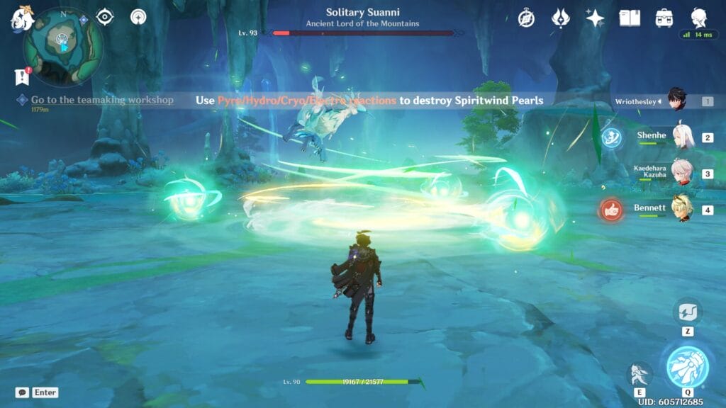 Wriothesley is the perfect character to bring into this boss fight. His Normal Attacks are always infused with Cryo, which gives him easy access to counter both of this boss’ mechanics. You can bring him alongside Shenhe, Bennett, and Kazuha to increase his damage.