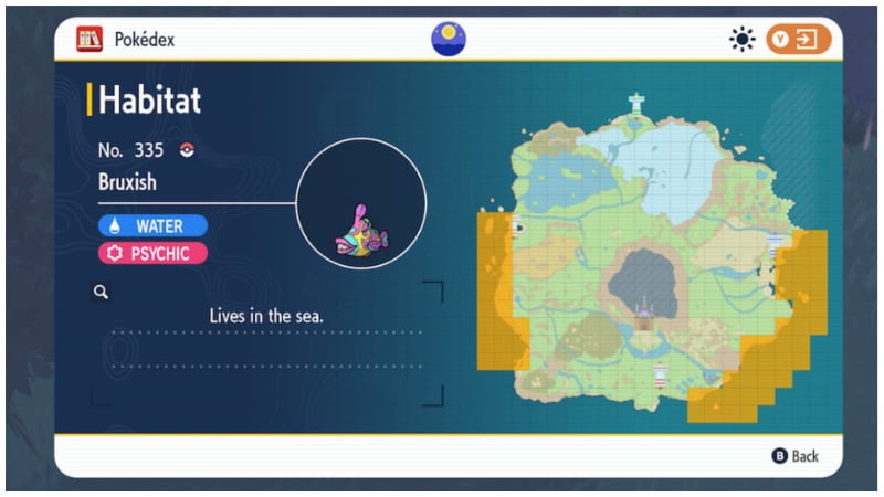 To find Bruxish in Pokemon Scarlet and Violet, you must visit the west or east coast of the Paldea region. It is worth noting that this Pokemon rarely swims close to the shore, so you must swim away. So, like we said at the beginning, you have to defeat at least one Titan for your Koraidon or Miraidon to gain swimming skills.