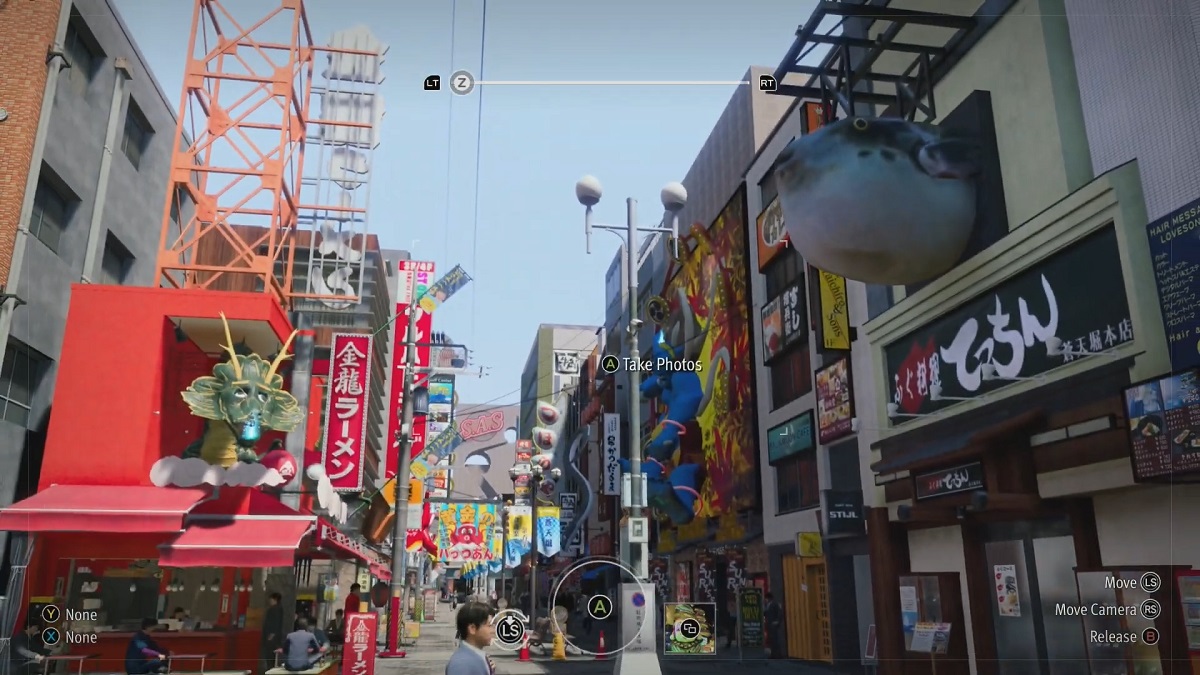 These beasts are a dragon, a puffer fish, and the lightning god. Finding them is quite easy, actually. All you have to do is get out of the bar and head over to W Sotenbori St. Look up, and you can spot the dragon, fish, and lightning god on top of different stores. But the photo you take must contain all three of them in it, and you cannot take photos of them separately. Use the image above to help yourself with the right angle for the photo.