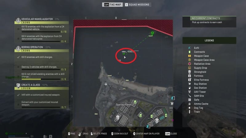 Now, just where underwater in the DMZ is the Drifting Supply Bag for CoD: Warzone 2? Well, you will have to head out northwest of Ashika Island. You’ll travel far. We mean extremely far out. You can swim out there, but it may be quicker to take a boat. Check out the precise location in the image below: