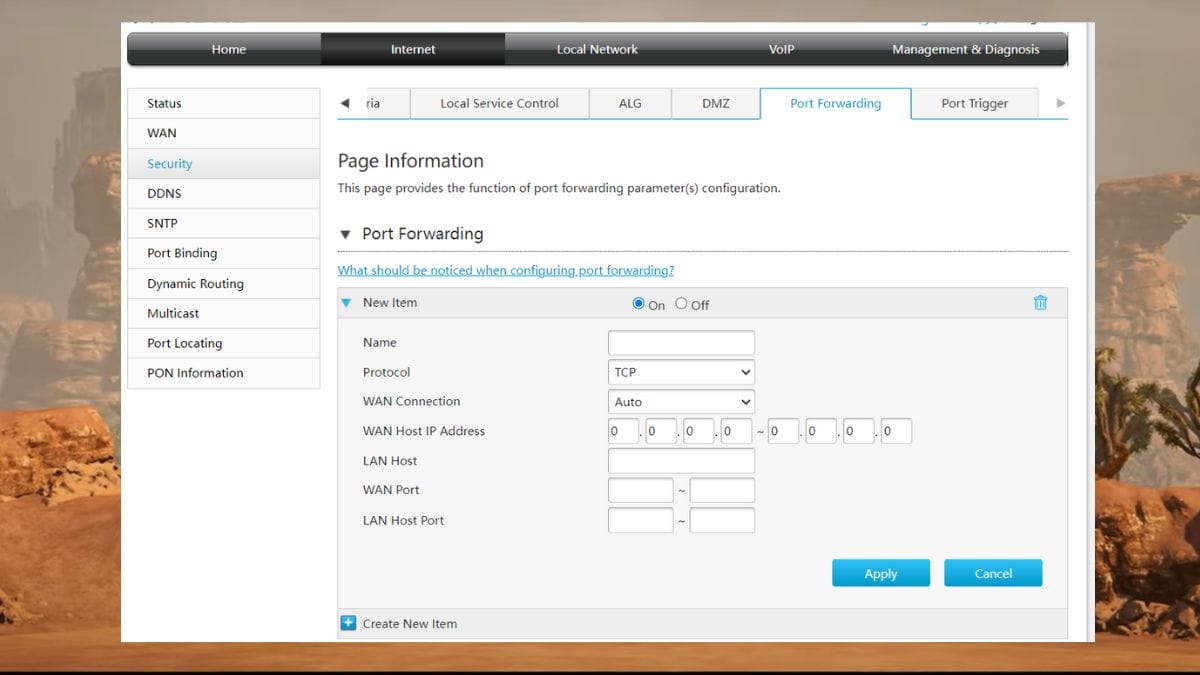 2. Locate the Port Forwarding Section and enter port details: Once logged in, find the Port Forward and add two separate entries: one for UDP port 8221 and another for UDP port 8211.