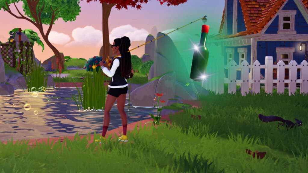 You can always refer to the map above. I’ve highlighted the areas that you want to check for the Dreamlight Valley Emerald Bottles. Whip out your Fishing Pole and cast out. You won’t know you’re at the right spot until the line hits the water and golden ripples appear around the lure.
