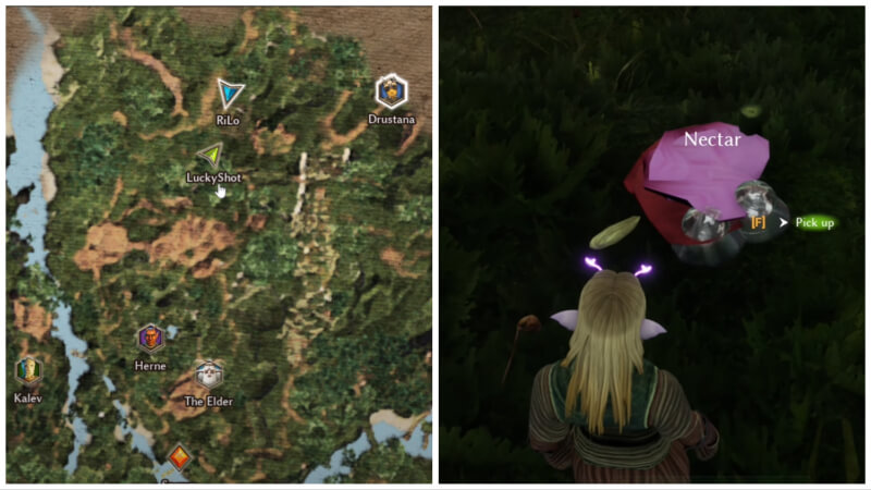 If you’ve progressed far enough in the story, you can get Nectar by chopping down Cyclamen. This plant is widespread in the southern part of the game map on the south side of the river. This plant is higher level, so you will need at least Flint Hatchet to cut it down. But if you have already reached this location, such minor things as Flint are no longer a problem.