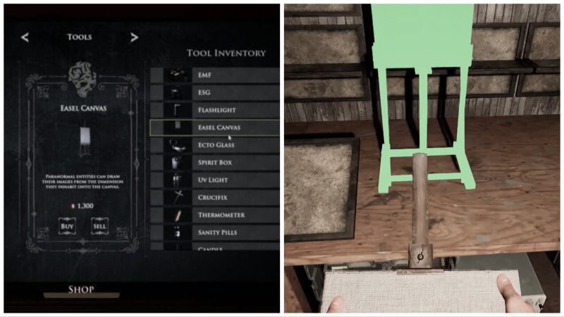 Like any other item in Demonologist, you can buy Easel Canvas from the in-game shop in the safe area. You’ll have to pay $1,300 for this, so Easel Canvas isn’t the first item you’ll want to buy. You will have to complete several tasks to earn the required amount of money. In addition, Easel Canvas is almost useless if you don’t know which room the ghost is in.