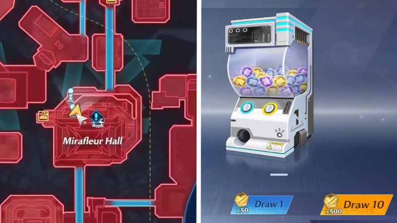 The Mirafleur Hall contains a row of gachapon machines that can be used to exchange Old Vera Coins for random prizes in Tower of Fantasy. Possible prizes include Red Nuclei, Weapon Batteries, Crystals, Dark Crystals, and other useful items to help Wanderers on their journey. Keep in mind that these machines should be treated similarly to the Special Order gacha system for pulling weapons or Matrices. In other words, spending Old Vera Coins to receive a specific item is not possible, as the drop rate is entirely up to chance.