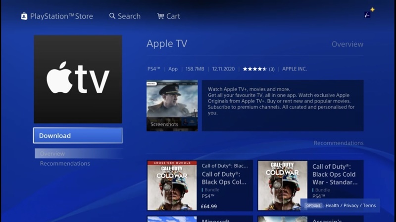 - Use the PS5 search box to find the Apple TV app or look under “All App” in the home Media home.