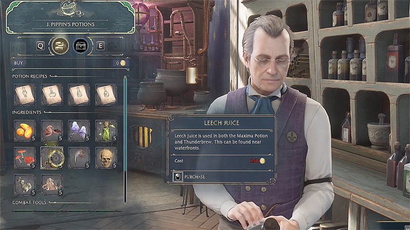 The first way to get Leech Juice in Hogwarts Legacy is, of course, purchasing. Travel to Hogsmeade and go to J. Pippin’s Potions shop to get Leech Juice. This ingredient will cost you 150 Galleons. It’s not that expensive, but if you want to brew a few potions, you’ll have to pay a lot more.