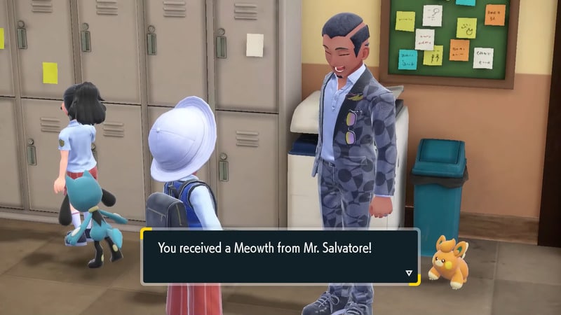 First, as we said, you will have to attend foreign language classes. To do this, you must go to the Academy in the central city of Mesagoza. Go to the registration desk and talk to the NPC working here. Among the suggested places to visit, you must choose Languages. By visiting the Language lessons, you will meet the teacher Salvatore, and it will be he who will give you the coveted Pokémon in the future. If foreign Language lessons are unavailable, you only need to get a few more badges.