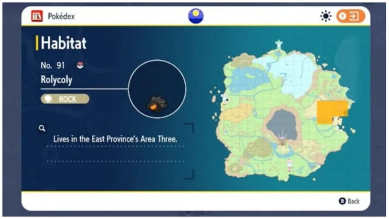 To get Rolycoly Coal in Pokémon Scarlet and Violet, you must defeat or capture Rolycoly, Carkol, or Coalossal in their habitats. Fortunately, little Rolycoly and its older relatives, Carkol, live in only one place – East Province (Area Three). At the same time, the habitat of Rolycoly is concentrated only in the central part of this area, while Carkol roams throughout the location. As for Coalossal, it doesn’t spawn in the wild. So if you want to fight him, you have to go to raids.
