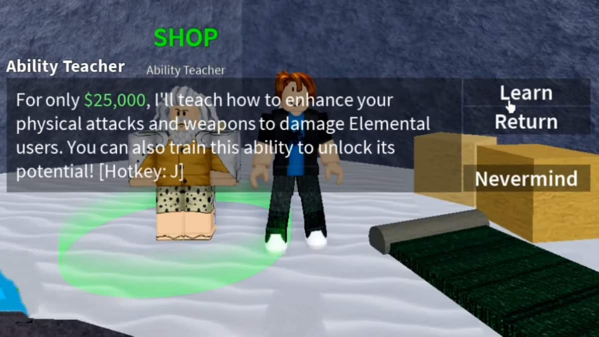You can purchase the initial Aura for 25,000 Beli from the Ability Teacher. To find this vendor you’ll need to visit Frozen Village in the First Sea. There you can find the Ability Teacher in a cave near the Colors Specialist. Getting Stage 1 Haki is just the beginning, however. You’ll need to do a good deal of grinding to reach Stage 5 Haki. To do so you’ll need to earn EXP by using weapons like swords and guns in combat. You won’t gain EXP from Blox Fruit moves, so set your special abilities aside. Kitsune will still be there when you’re done.
